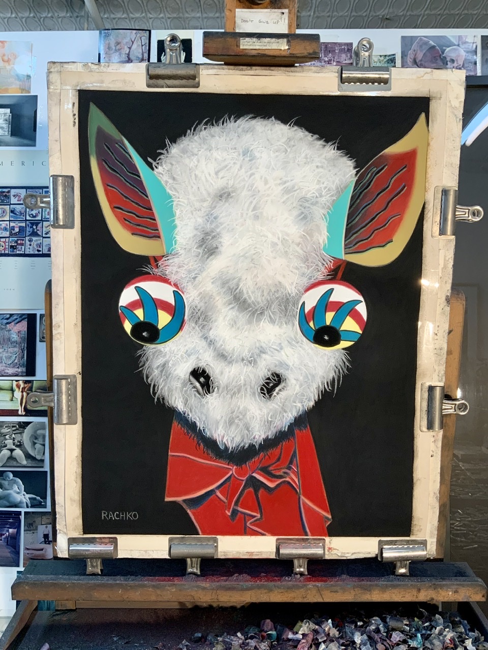 Posted on June 27, 2020, in 2020, Art Works in Progress, Bolivianos, Creative Process, Studio, Working methods and tagged ”Trickster”, easel, finished, lower left, signed, today. Bookmark the permalink. Comments Off on Q: What’s on the easel today?.