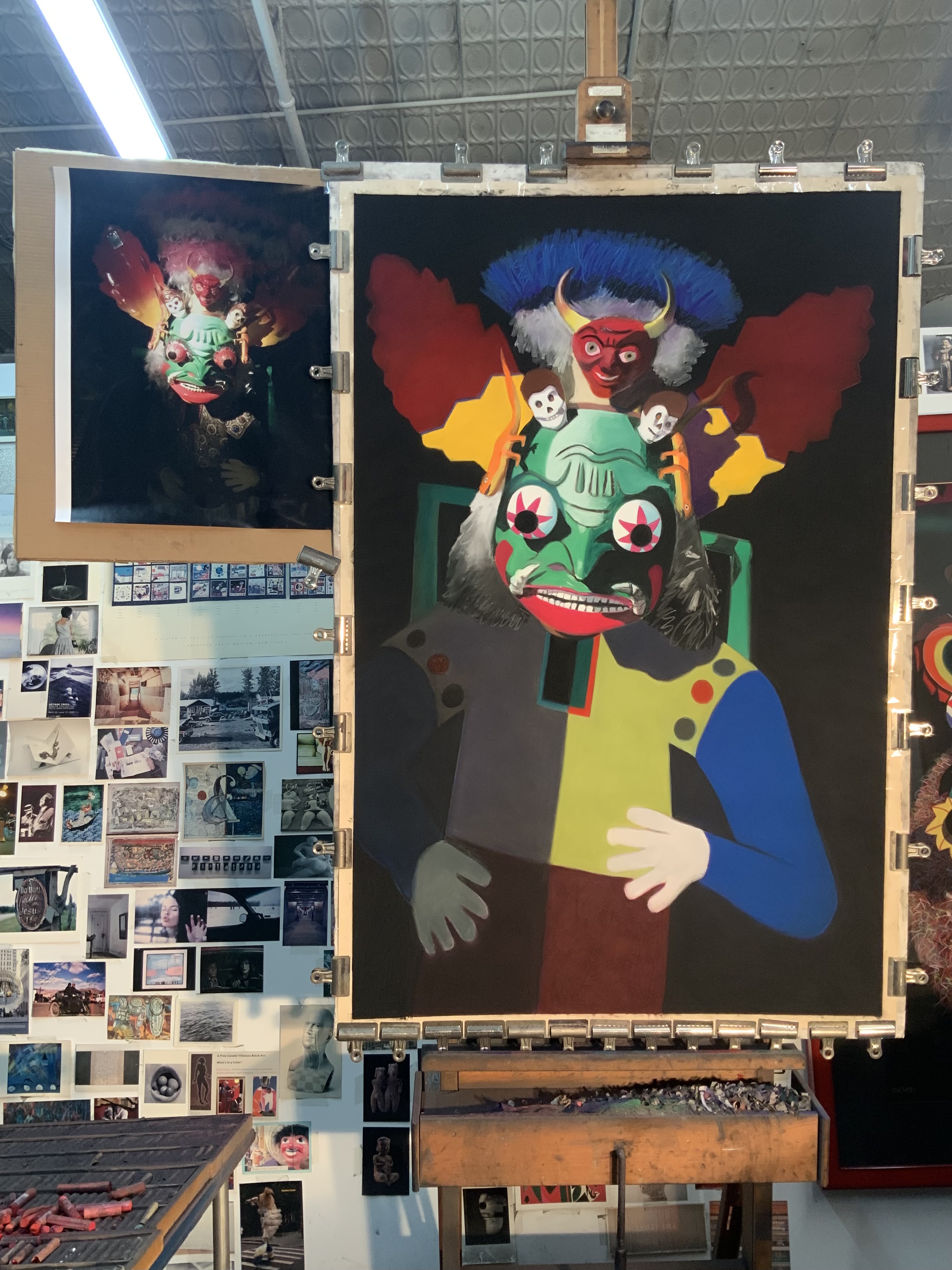 Posted on December 27, 2025, in 2025, 2025, Art Works in Progress, Creative Process, Studio, Working methods and tagged “Gatecrasher”, continue, easel, soft pastel on sandpaper, today, working. Bookmark the permalink. Leave a comment.