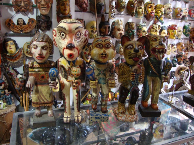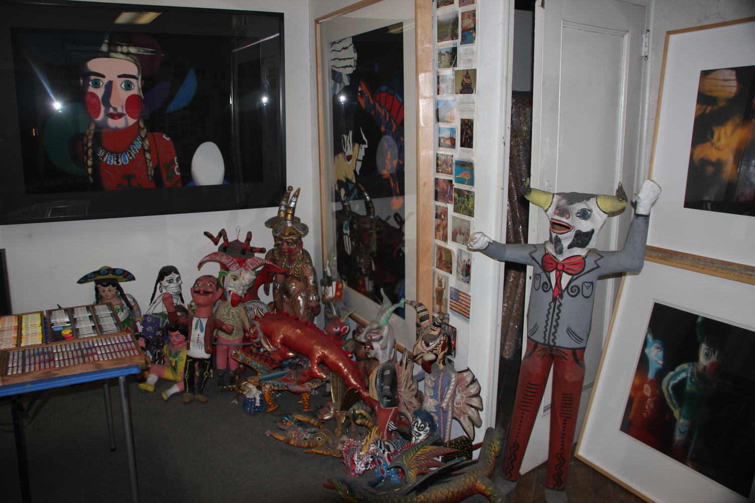 Q: Can you discuss your process, including how you actually use Mexican and Guatemalan folk art figures in your art?