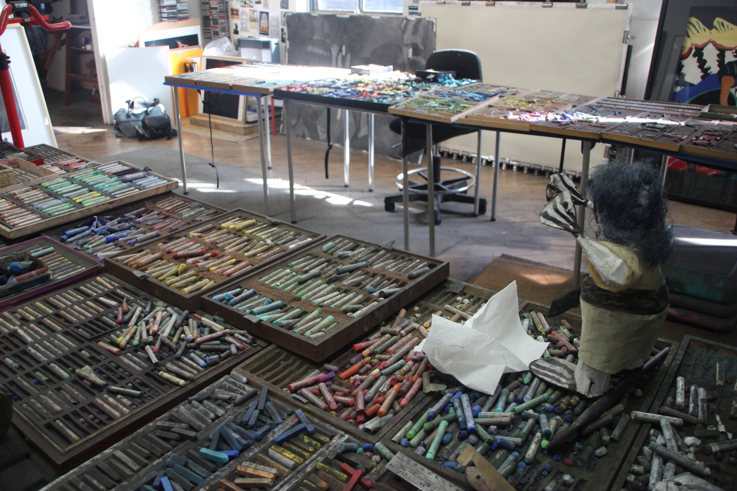 I once completed 6 large (58” x 38”) pastel paintings in a single year, but more recently 4 or 5 per year is common. It takes approximately 3 months to make each one. During that time I layer and blend together as many as 25 to 30 layers of pastel. Of course, the colors get more intense as the painting progresses and the pigment accumulates on the sandpaper.