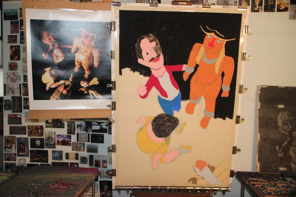 A: I’m working on a large pastel painting based on a photograph shot when I was vacationing recently in La Paz, Bolivia. How fortuitous to stumble upon a mask exhibition at The National Museum of Ethnography and Folklore! It felt as though the exhibition somehow was staged for me, just waiting for me to come along and photograph it.