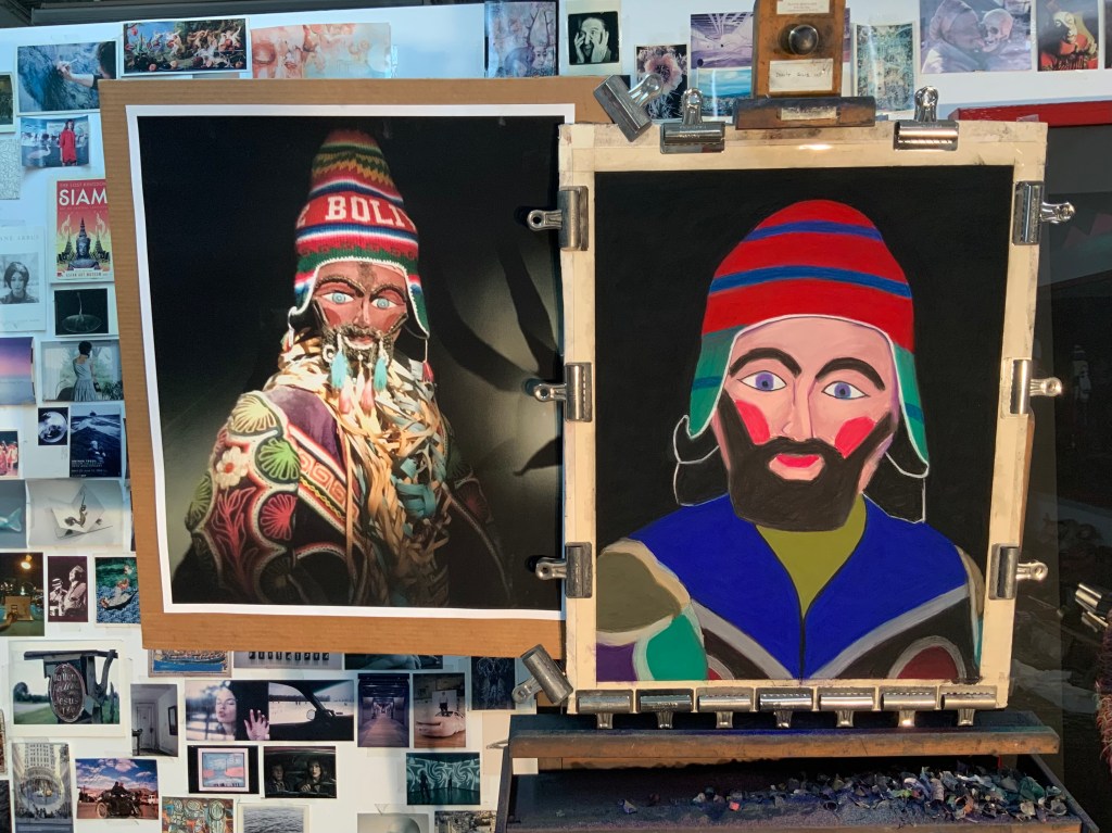 “Magisterial,” soft pastel on sandpaper, 58” x 38” in progress
