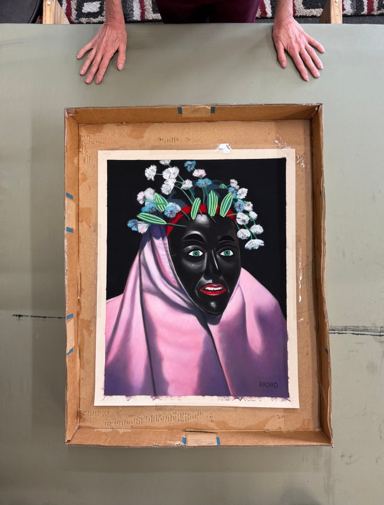Signing “Apparition,” soft pastel on sandpaper, 58” x 38”
