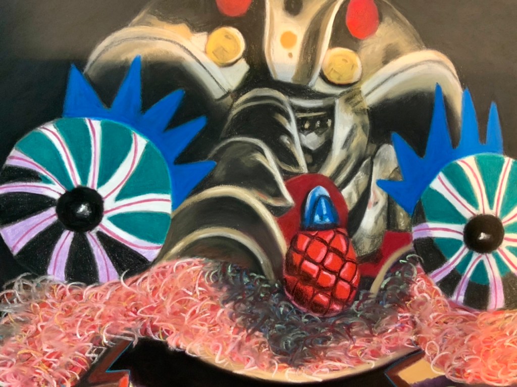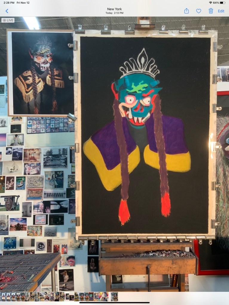 A: I just started a large 58″ x 38″ pastel painting based on the same reference photograph I used for “Shamanic,” 26″ x 20.” Sometimes ideas for new projects arrive in prosaic ways. I saw a mockup of “Shamanic” on my New Delhi gallery’s Instagram page. The mockup depicted my pastel painting as considerably larger than it actually is. I became intrigued with this unexpected format and decided to create a new one in a larger size.