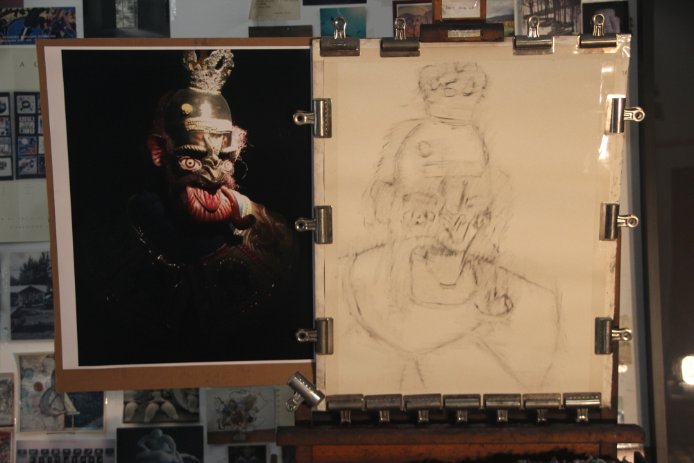A: This is a preliminary charcoal sketch for my next large (58” x 38”) pastel painting. I loved seeing “The Champ,” 26” x 20,” blown-up as a poster in the London Underground so I decided to create a larger original. Now I can’t wait to tackle all that hair! So far the sketch resembles a Rastafarian, but who knows if that will carry over to the pastel painting! Stay tuned.
