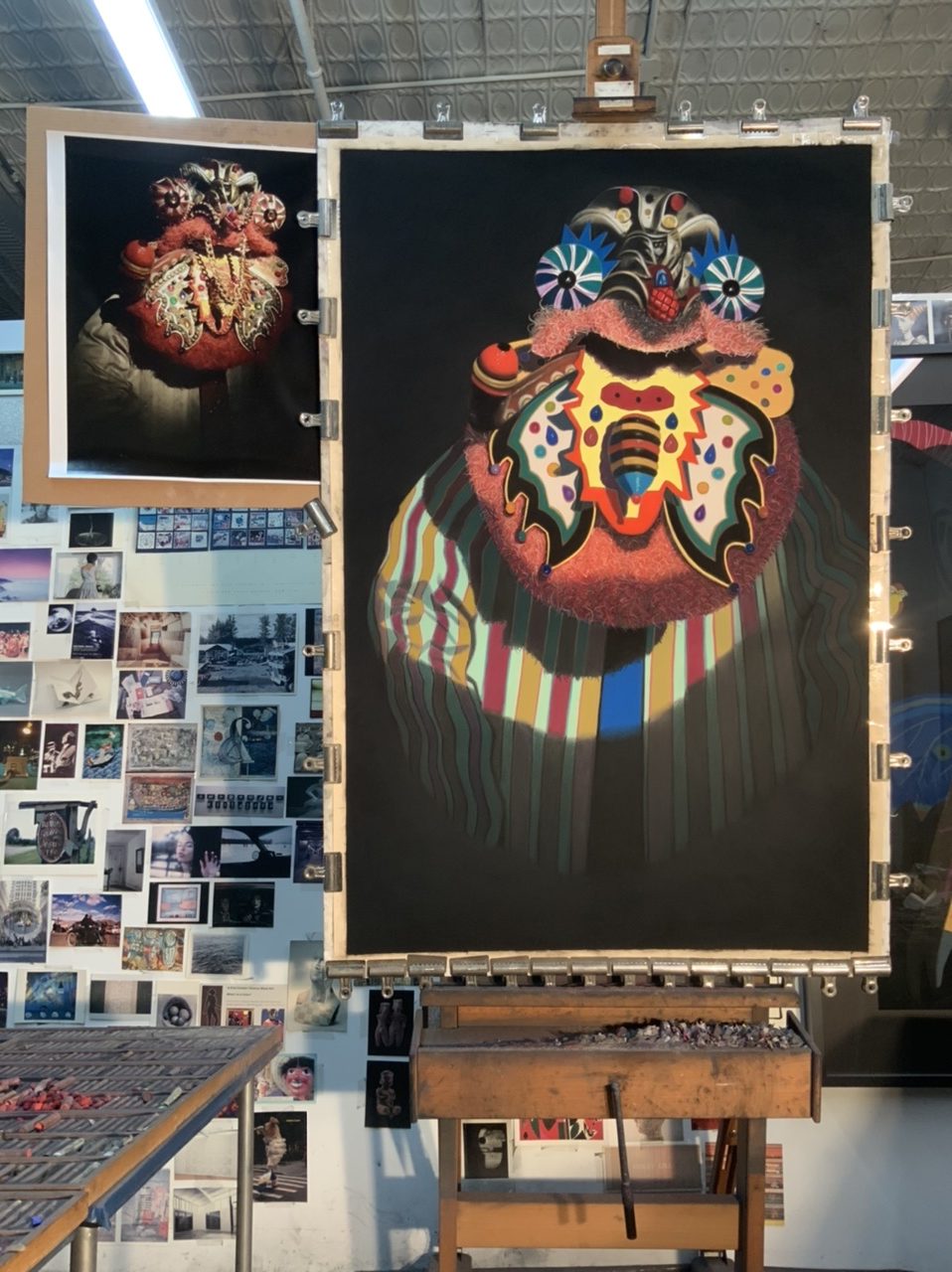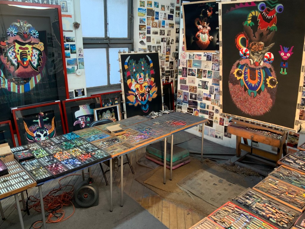 A: For my current series, “Bolivianos,” I am using as source/reference material c-prints composed at a La Paz museum in 2017. I began the series by picking my favorite from this group of photos (“The Champ” and later, “Avenger”) before continuing with others selected for prosaic reasons such as I like some aspect of the photo, to push my technical skills by figuring out how to render some item in pastel, to challenge myself to make a pastel painting that is more exciting than the photo, etc. I like to think I have mostly succeeded.