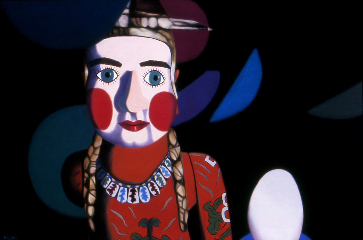 Q: You often speak about the Mexican and Guatemalan figures in your paintings as serving a function analogous to actors in a repertory company. In other words, a particular figure plays a different role each time it appears in one of your pastel paintings. Would you choose a figure and show how you have painted it through the years?