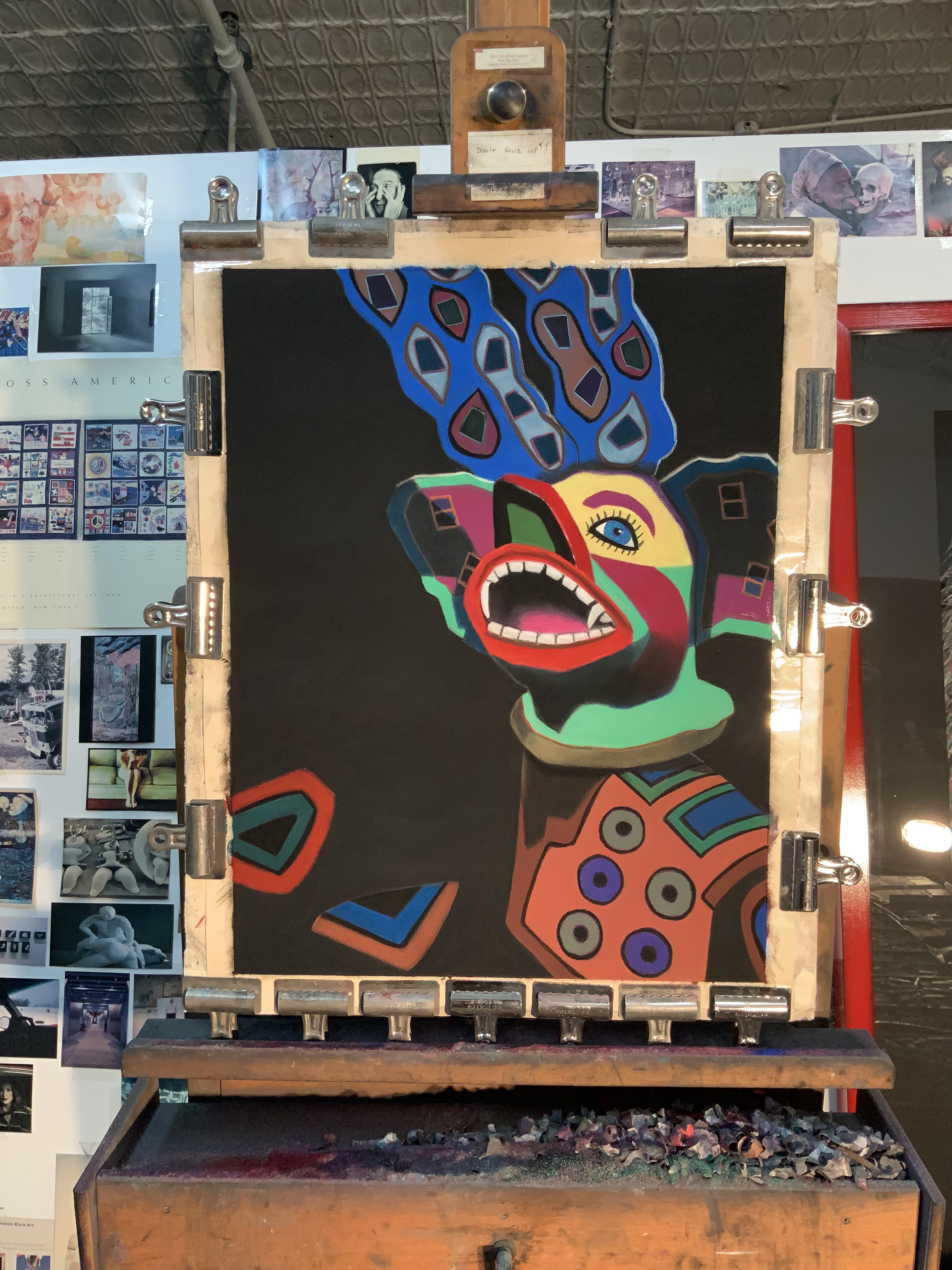 Start/Finish of “Maestro,” soft pastel on sandpaper, 26” x 20”