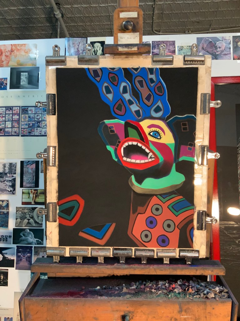 A: I’m finishing up “Maestro,” soft pastel on sandpaper, 26” x 20”.
