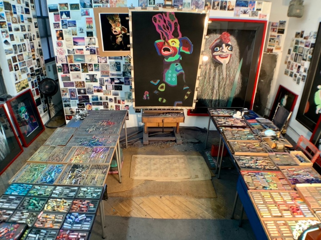 In progress: “Shadow,” soft pastel on sandpaper, 26” x 20”